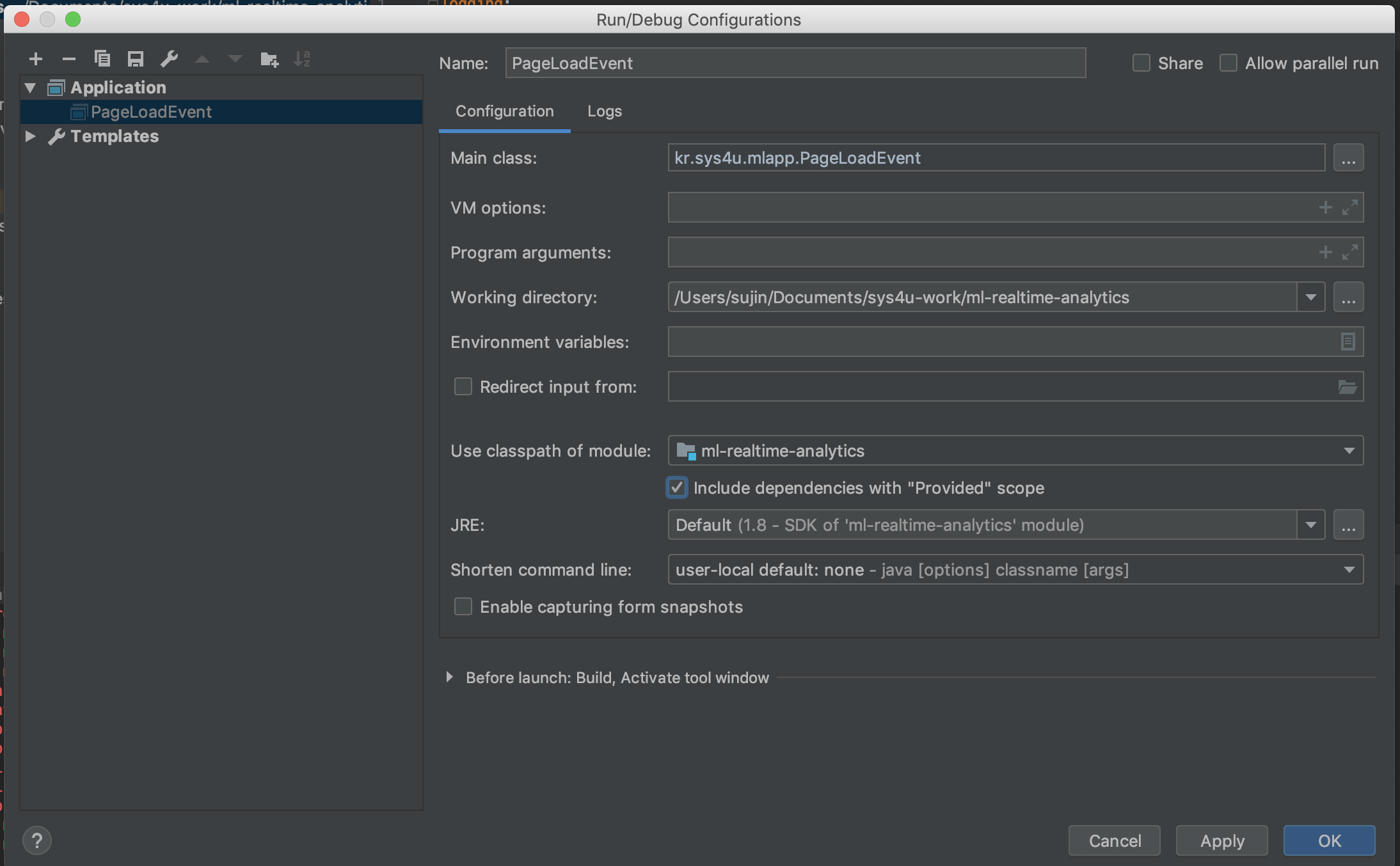 eclipse에서와 달리 intelliJ에서는 run Configurations에서