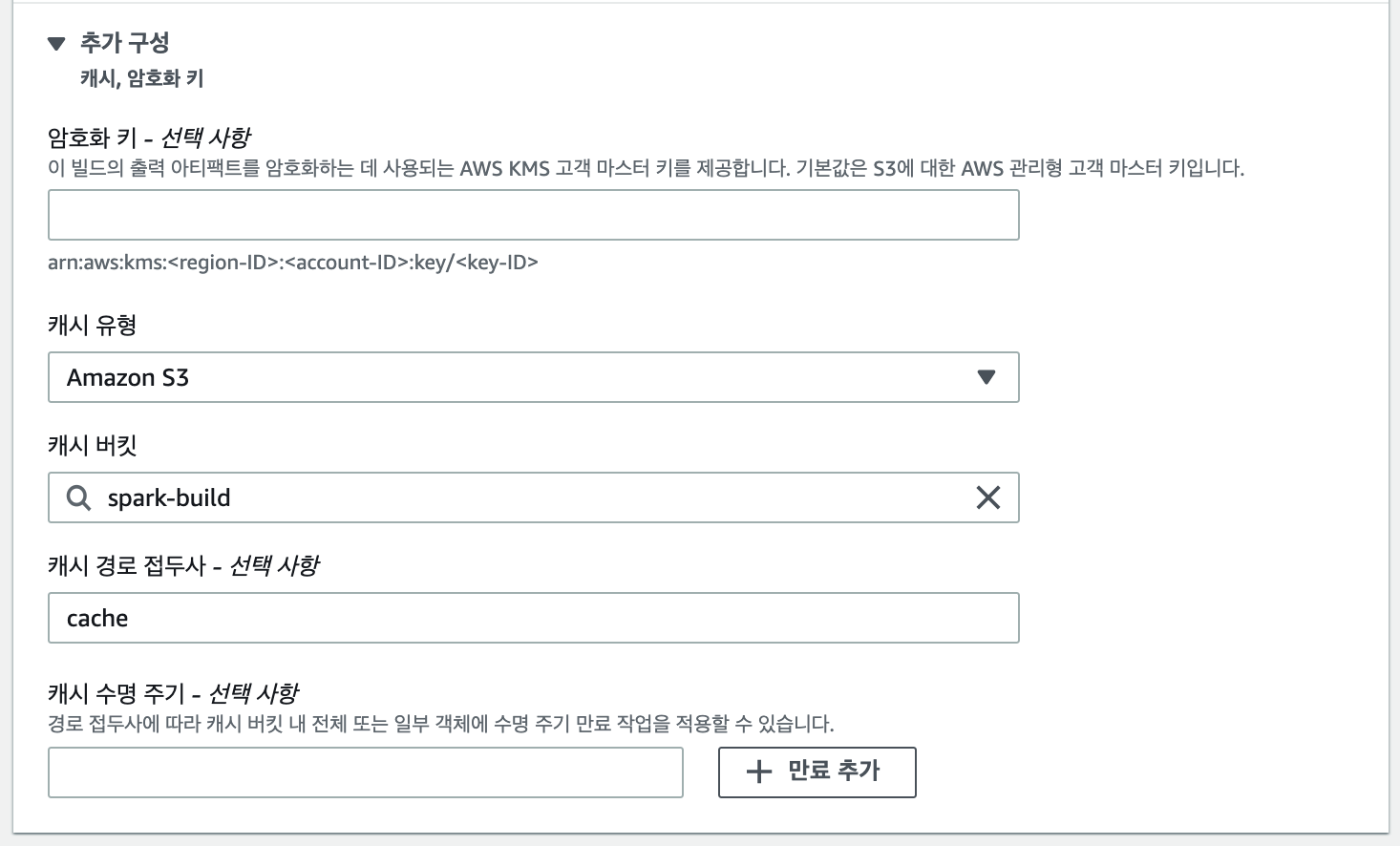 아티팩트의 나머지 부분은 default 값으로 설정했는데, 추가 구성의 캐시만 설정해줬다.