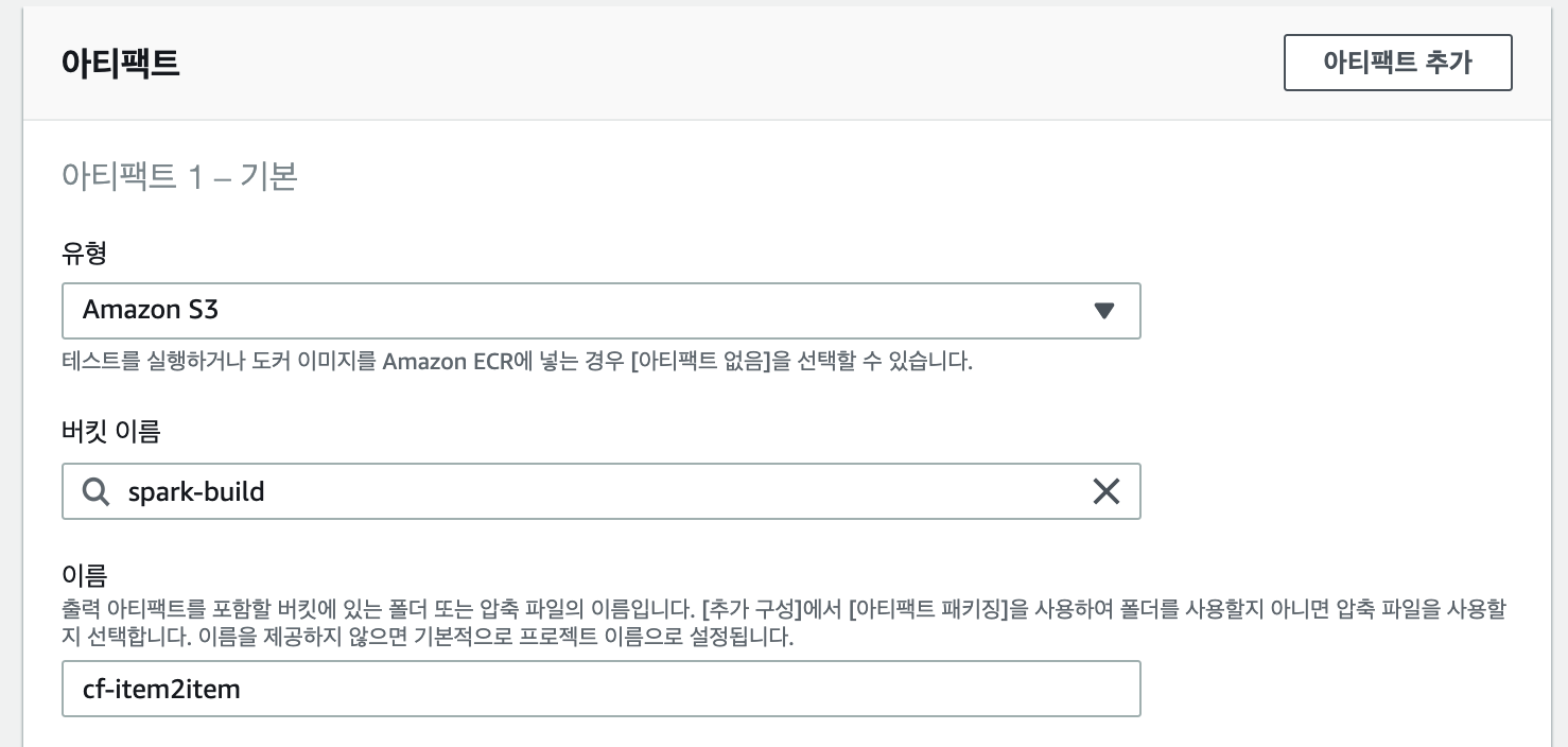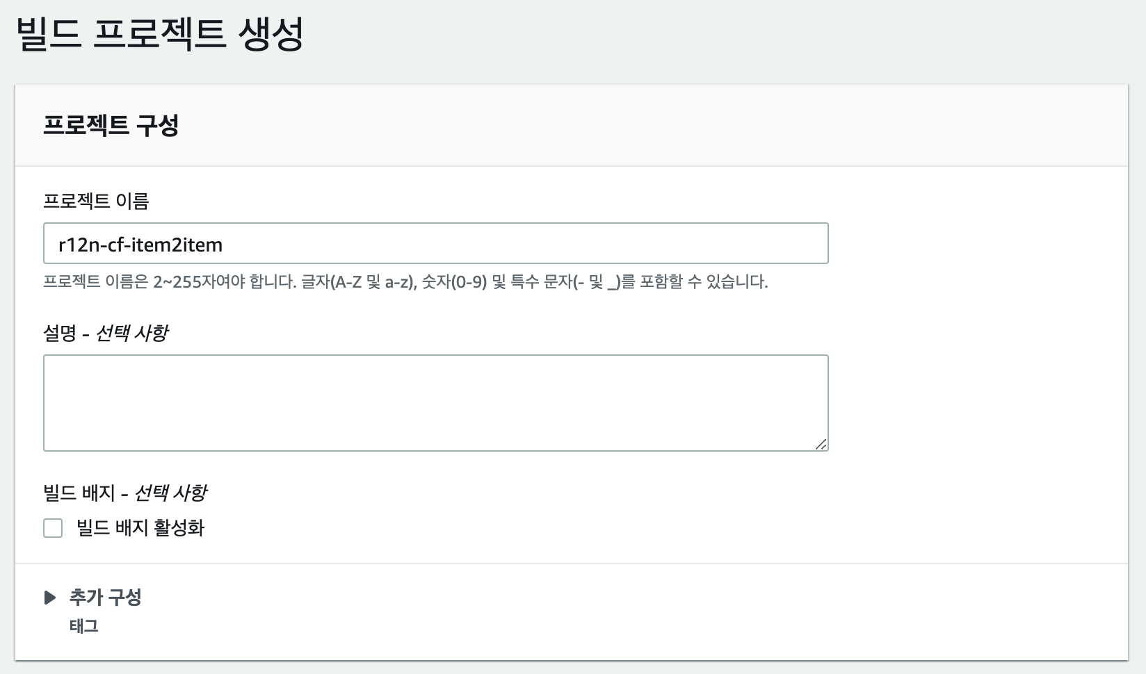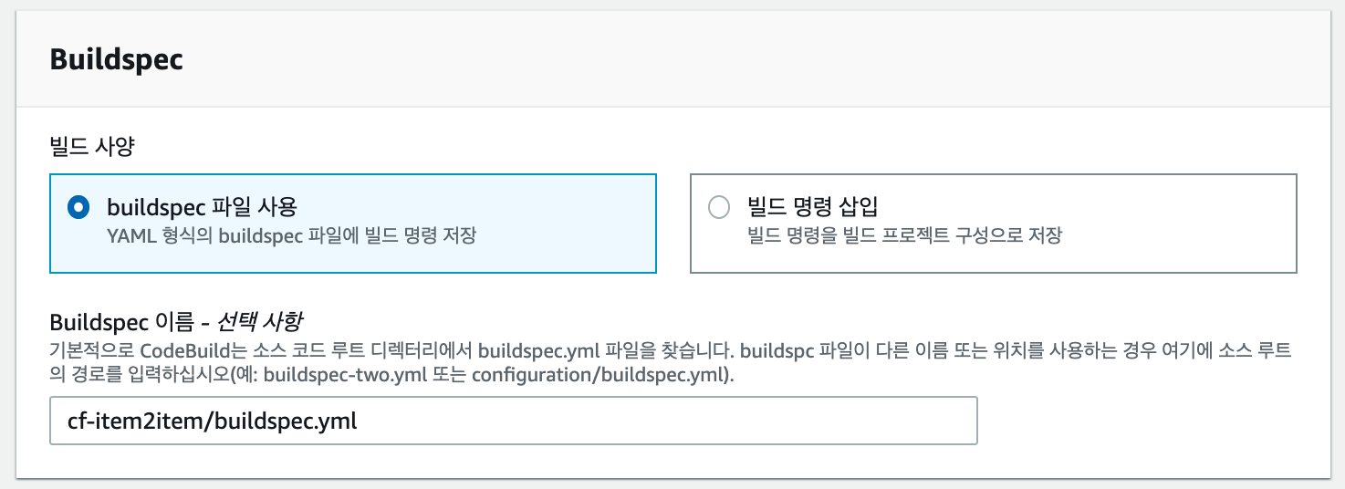 Submodule인 cf-item2item 내에 있는 buildspec.yml을 참조하여 build하라는 설정을 준 것이다.